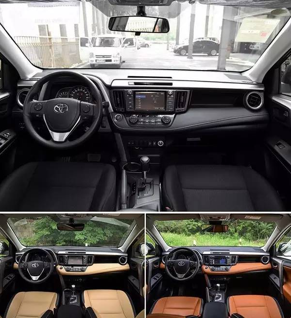 RAV4榮放的內(nèi)飾增加了兩個(gè)新配色;內(nèi)飾的選材用料還是挺不錯(cuò)的,無論是高配還是低配,中控臺(tái)都采用了真皮材質(zhì)來包裹。