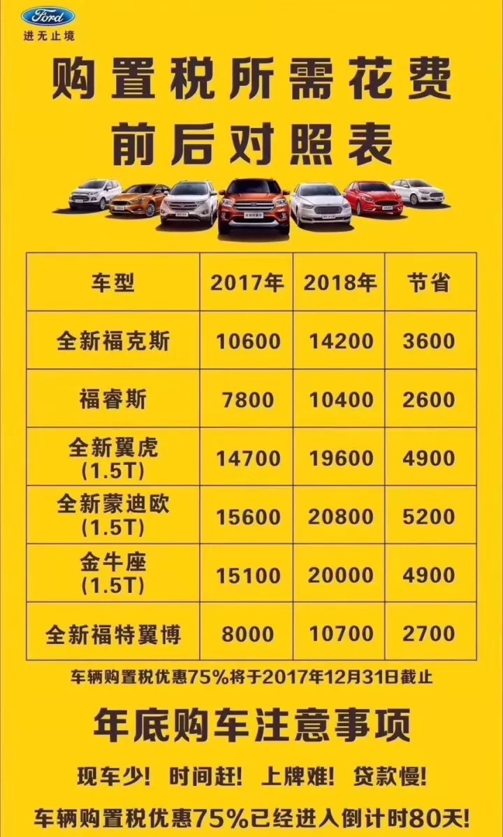 2017-2018購(gòu)置稅費(fèi)用對(duì)比