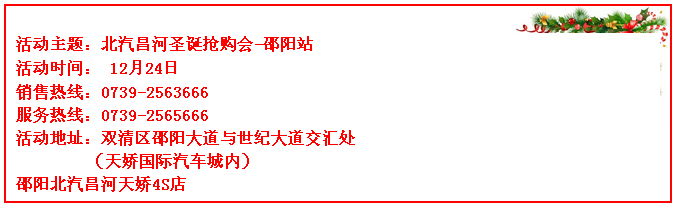 “北汽昌河圣誕搶購會(huì)邵陽站”主題活動(dòng)將如期而至