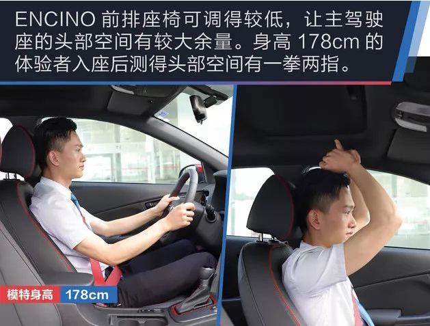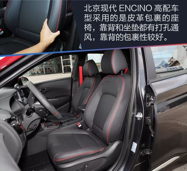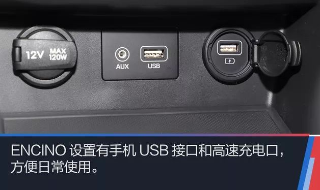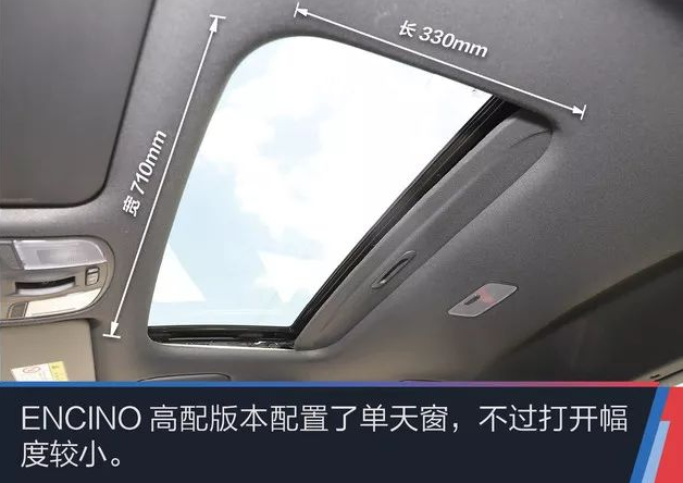和海外版車型不同的是,ENCINO高配車型采用皮革包裹而非皮革+織布的材質,座椅靠背包裹性做得比同級別小型SUV要好一些。例如,紅色縫線,紅色安全帶,仿碳纖維紋路的座椅皮革裝飾等都在給車內(nèi)營造運動的氛圍。