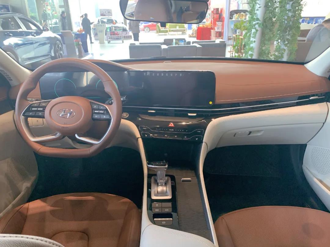 內(nèi)飾部分,沿用了北京現(xiàn)代新上市車輛的一貫設(shè)計:配備雙屏中控屏幕、全新高清的液晶儀表盤,科技感十足;貫穿式空調(diào)出風(fēng)口與中控臺相輔相成,更顯層次感,四輻式多功能方向盤搭配按鍵式換擋和多拼色的內(nèi)飾設(shè)計進一步提升內(nèi)飾的豪華氛圍