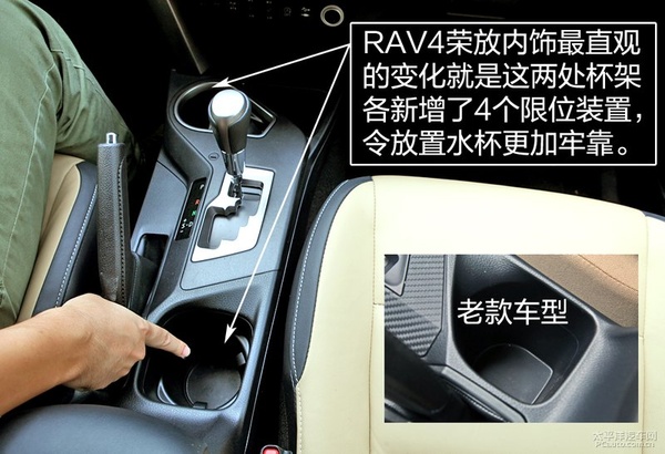 拋開配置差異帶來的不同,新款RAV4榮放在前排杯架的處理上更加用心,兩處杯架各新增了限位裝置,放置高位的水瓶或是比較細的水瓶都變得更加牢靠,同時也降低異響發(fā)生的可能。