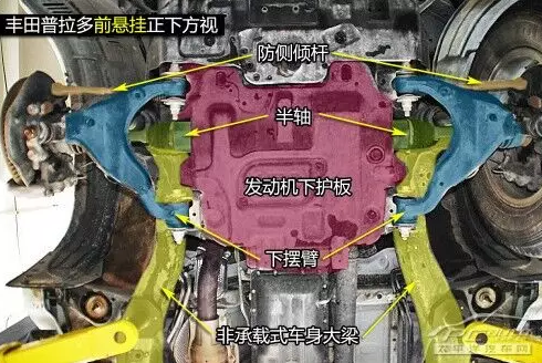 普拉多前雙叉臂式獨立懸掛在空間利用率方面雖稍遜于麥弗遜懸掛,但兩者結(jié)構(gòu)都是相當(dāng)緊湊的,且由于多了上擺臂,在抓地性和防側(cè)傾等方面的表現(xiàn)都要比后者優(yōu)秀。普拉多發(fā)動機下方有護板保護,且為鋼制。在下擺臂和車身大梁的連接方面則是使用較為簡單的螺栓連接。