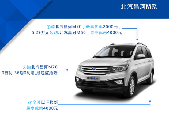 金秋十月,溫馨鉅惠,北汽昌河為匆忙的你特此帶來多款暖心好車,讓全家人的出行更安全,更舒適,更經(jīng)濟實惠。即日起,凡購買北汽昌河M70,可享0首付,36期0利息的超值大優(yōu)惠,另送盜搶險。購買M50,最高立享優(yōu)惠4000元。