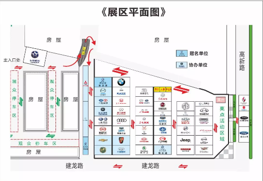 主入口處有車展專用觀光車接送到展區(qū),??空军c(diǎn)依次為主入口——龍騰上汽大眾——直升機(jī)(亮點(diǎn)活動區(qū)域)。
