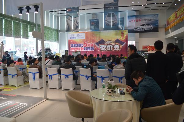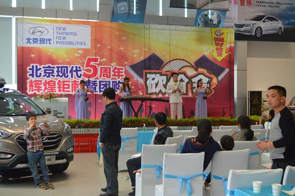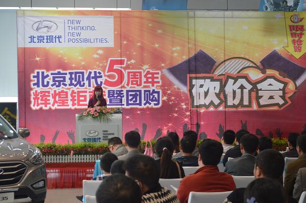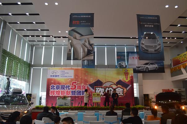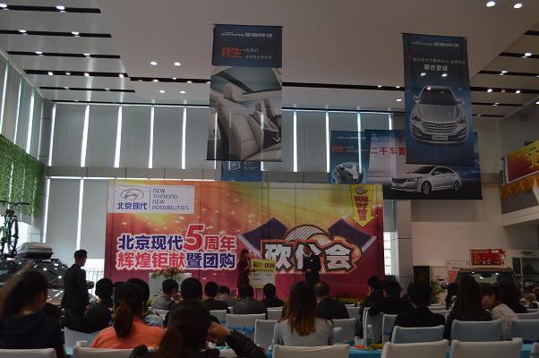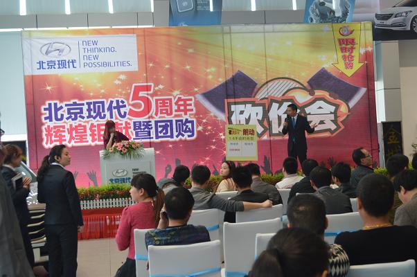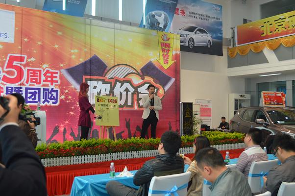 4月13日北京現(xiàn)代邵陽(yáng)(天嬌)寶京4S店成立5周年,為答謝新老客戶的厚愛(ài)推出大型“團(tuán)購(gòu)砍價(jià)會(huì)”活動(dòng)。