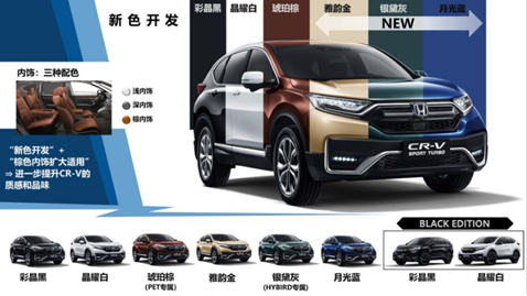 配色方面,新款本田CR-V除了新增了雅韻金、銀黛灰(混動(dòng)車型專屬)、月光藍(lán)三種外觀配色之外,還有個(gè)性十足的Black Edition車型(包括彩晶黑、晶耀白兩種配色)可供選擇,該車型有專屬標(biāo)識(shí)。