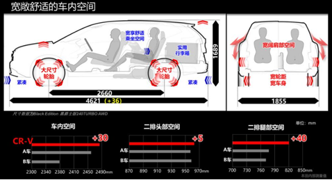 此外,新車的車身尺寸相比以往也有所提升,新款本田CR-V兩驅(qū)版車型的長(zhǎng)寬高分別為4621/1855/1679mm,軸距為2661mm,四驅(qū)版車型的長(zhǎng)寬高分別為4621/1855/1689mm,軸距為2660mm。