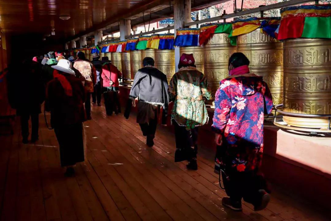 這里商鋪林立,各種商品琳瑯滿目,這里也成為來理塘必逛地之一。街道中最為醒目的便是轉(zhuǎn)經(jīng)道。由順時針出發(fā),經(jīng)筒也是順時針轉(zhuǎn)動。走完一圈,便算是認(rèn)認(rèn)真真的轉(zhuǎn)過一遭。