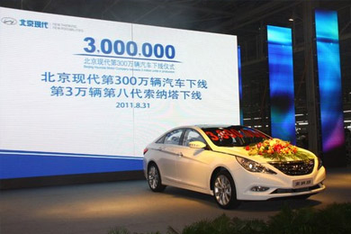 2011年8月31日,北京現(xiàn)代汽車有限公司(以下簡(jiǎn)稱北京現(xiàn)代)第300萬(wàn)輛汽車在北京正式下線。至此,北京現(xiàn)代成為國(guó)內(nèi)最短時(shí)間實(shí)現(xiàn)300萬(wàn)輛產(chǎn)量的汽車企業(yè)。繼2010年4月8日第200萬(wàn)輛下線后,北京現(xiàn)代僅用了16個(gè)月的時(shí)間就實(shí)現(xiàn)了第300萬(wàn)輛汽車下線。北汽集團(tuán)董事長(zhǎng)、北京現(xiàn)代董事長(zhǎng)徐和誼在下線儀式上講道:“9年來(lái),以‘現(xiàn)代速度’與‘現(xiàn)代品質(zhì)’鑄就的300萬(wàn)輛,是北京現(xiàn)代發(fā)展過(guò)程中一個(gè)跨時(shí)代的里程碑。”