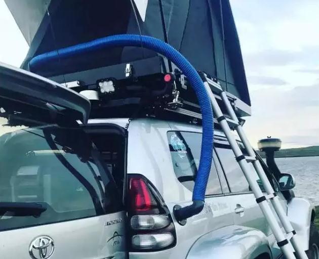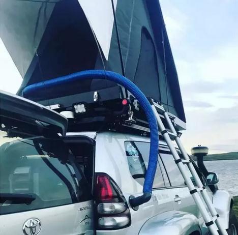 尾部相對(duì)前面就只加了一個(gè)拖車(chē)鉤,不過(guò)車(chē)頂卻是大做文章。除了加裝行李架之外,連帳篷也搬到了車(chē)頂,這樣子可以隨時(shí)在戶外過(guò)夜了!另外有車(chē)友知道那根藍(lán)色的管子是什么作用的嗎?