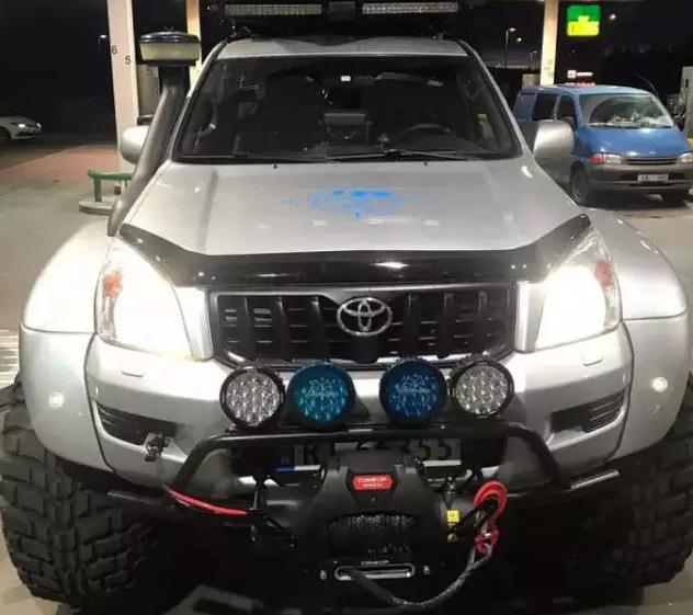先來(lái)看看它的前臉,這輛普拉多應(yīng)該是一輛低配的版本,連霧燈也沒(méi)有,所以車(chē)主改裝了一排4盞LED大燈在加裝的簡(jiǎn)易防撞杠上,而進(jìn)氣口為了不受水淹的影響,從翼子板開(kāi)孔延長(zhǎng)至A柱上。