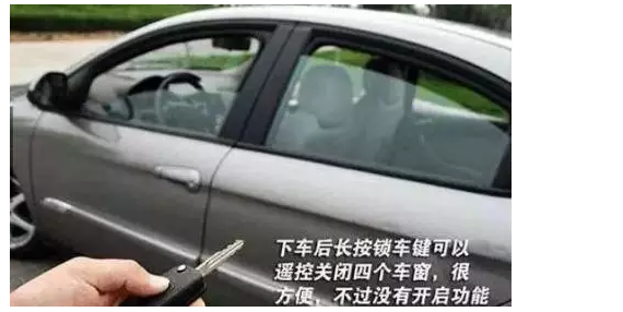 車輛熄火后才發(fā)現(xiàn)四個(gè)車窗和天窗都沒關(guān)閉,此時(shí)粗心的車主只好重新打火后關(guān)閉車窗。其實(shí)大可不必周折,只要長按鎖車鍵幾秒鐘,四門車窗就會自動升起,天窗也會自動關(guān)閉;長按解鎖鍵幾秒鐘,車窗會自動降下,天窗也隨之打開;長按后備箱鎖(有的車是連按兩次)也可以打開后備箱蓋。