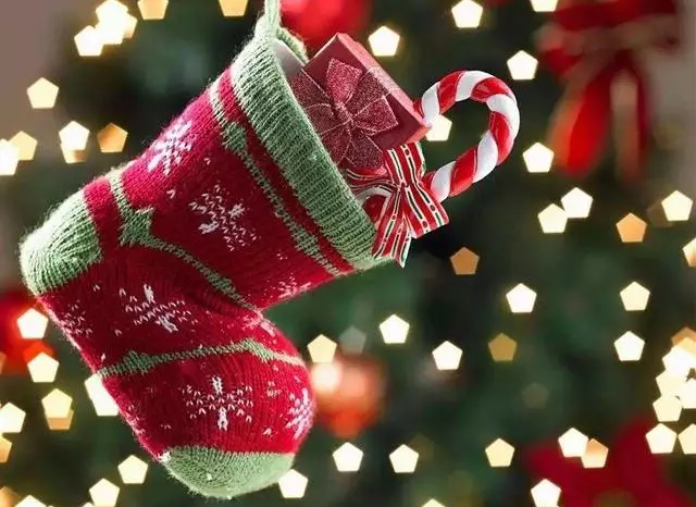 最早以前是一對紅色的大襪子,大小不拘。因為圣誕襪是要用來裝禮物的,所以是小朋友最喜歡的東西,晚上他們會將自己的襪子掛在床邊,等待第二天早上收禮。